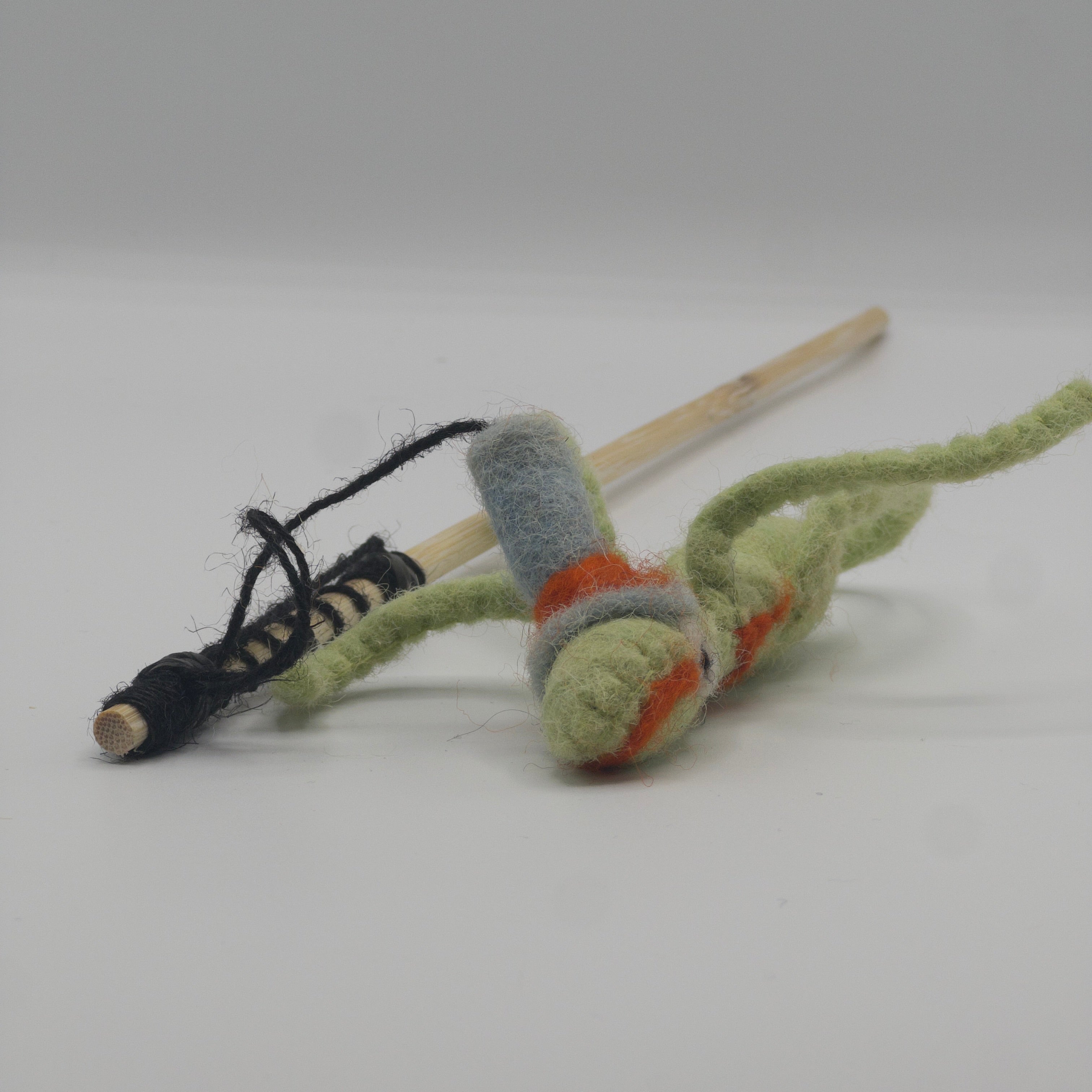 Made with sustainable and natural, wool felt and jute string. Produced without using any added compound that would harm or be released when chewed.