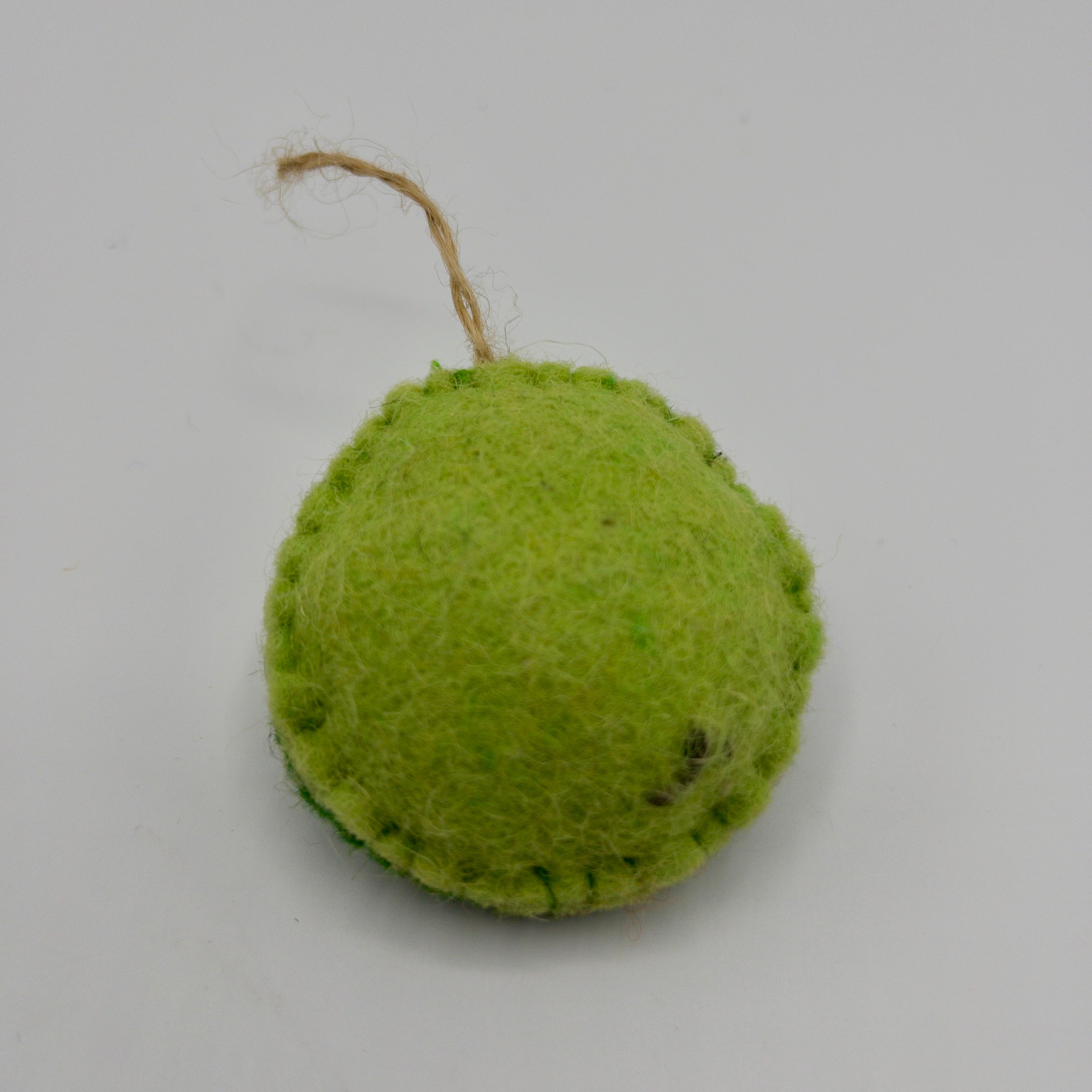 Made with sustainable and natural, wool felt and jute string. Produced without using any added compound that would harm or be released when chewed.