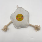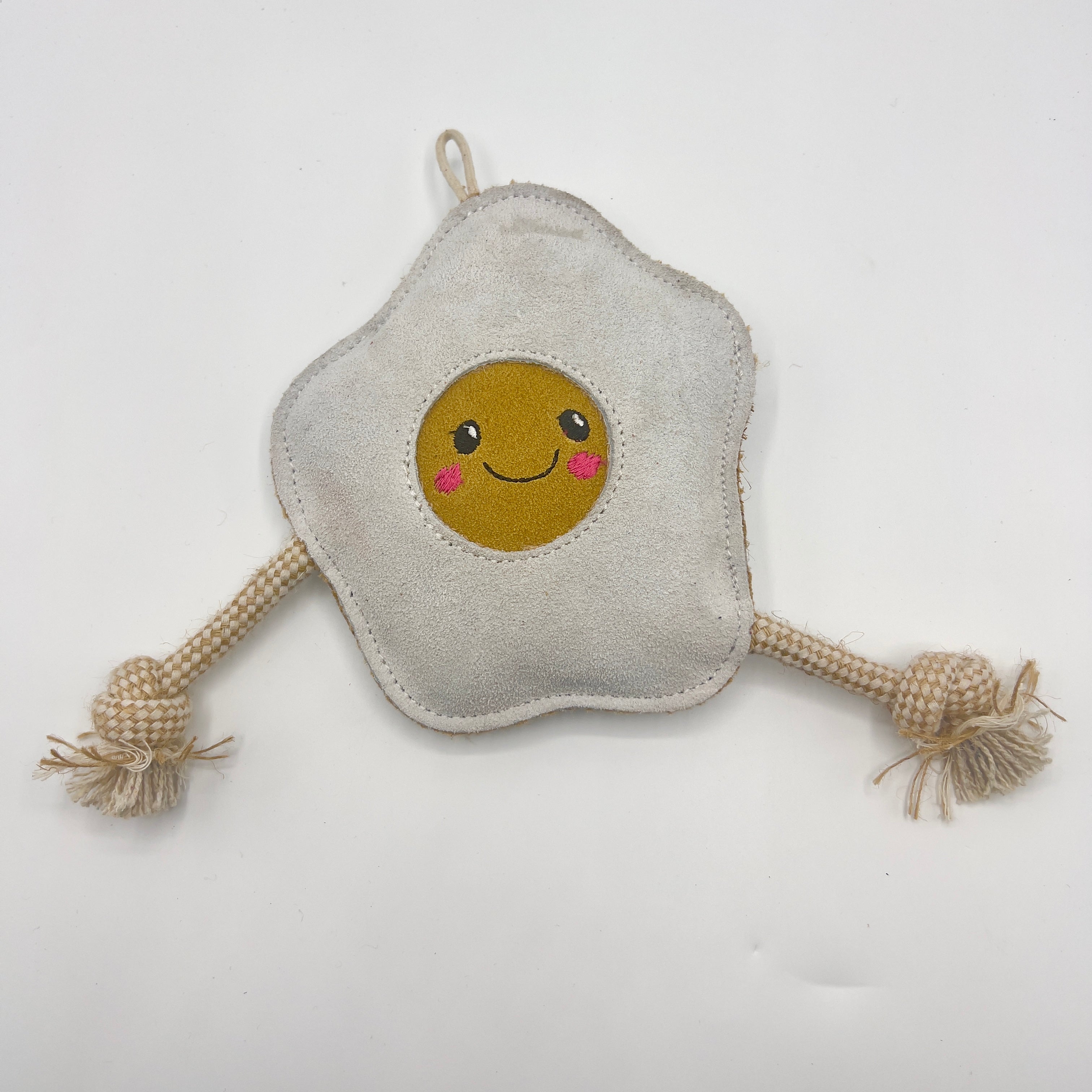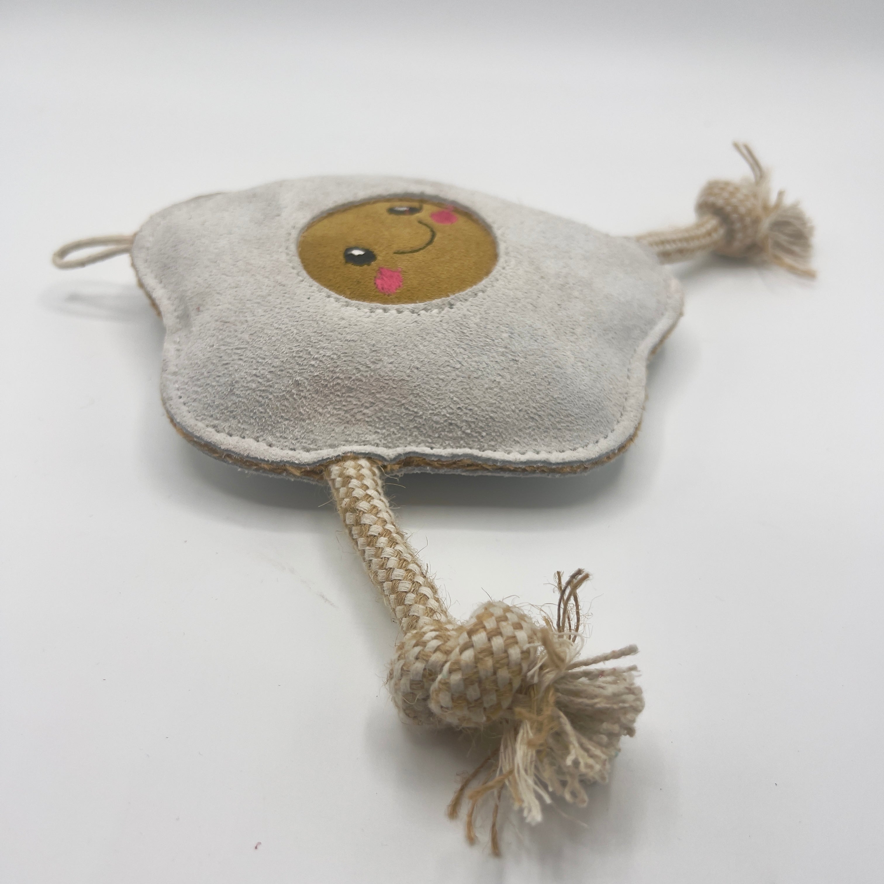 Made from a suede outer with natural jute fibre stuffing and jute rope legs. Jute is a natural, sustainable plant fibre. The suede is a by-product and ensures that this material is not wasted. Tough and long-lasting, made without using any compound that would harm or be released when chewed. Jute is 100% biodegradable.