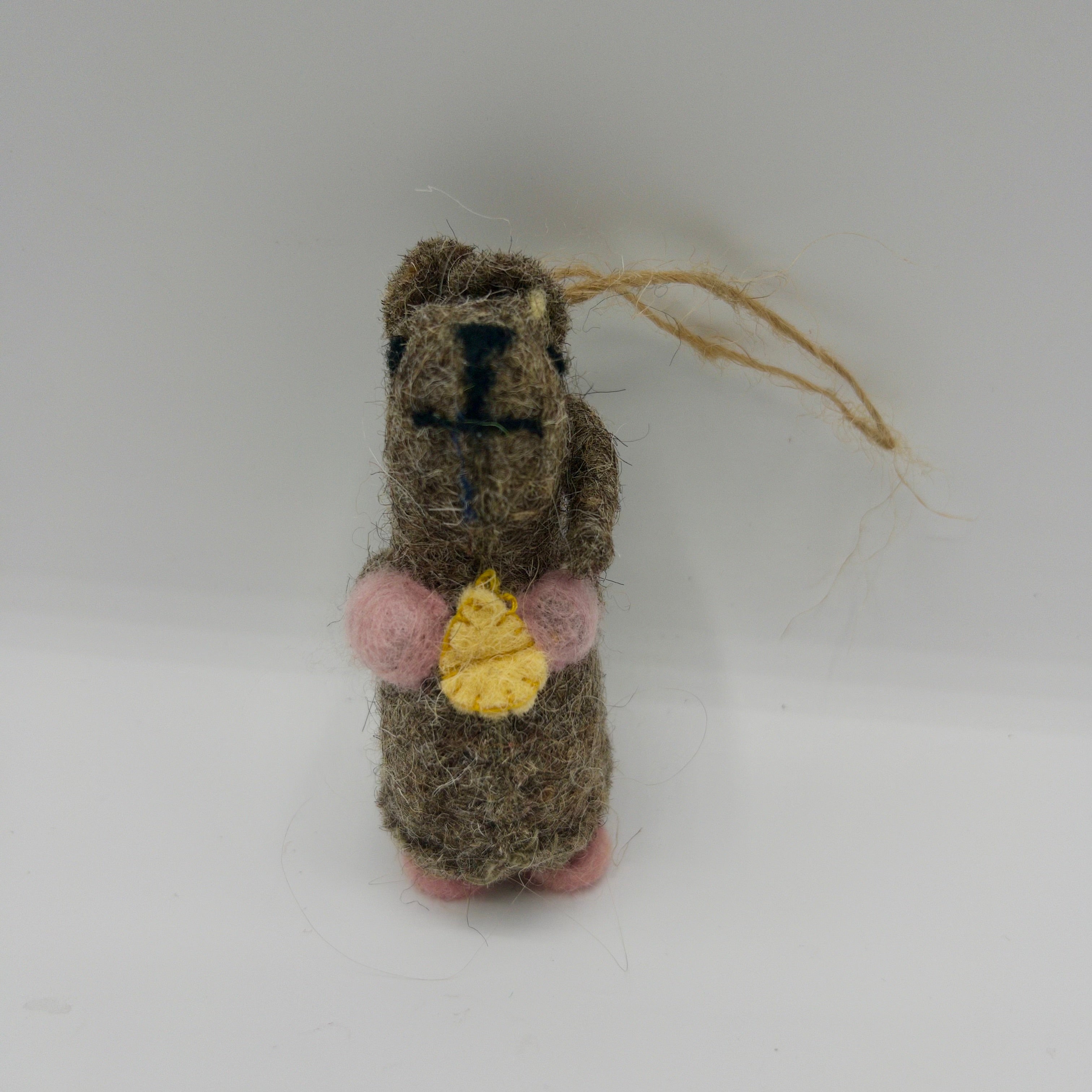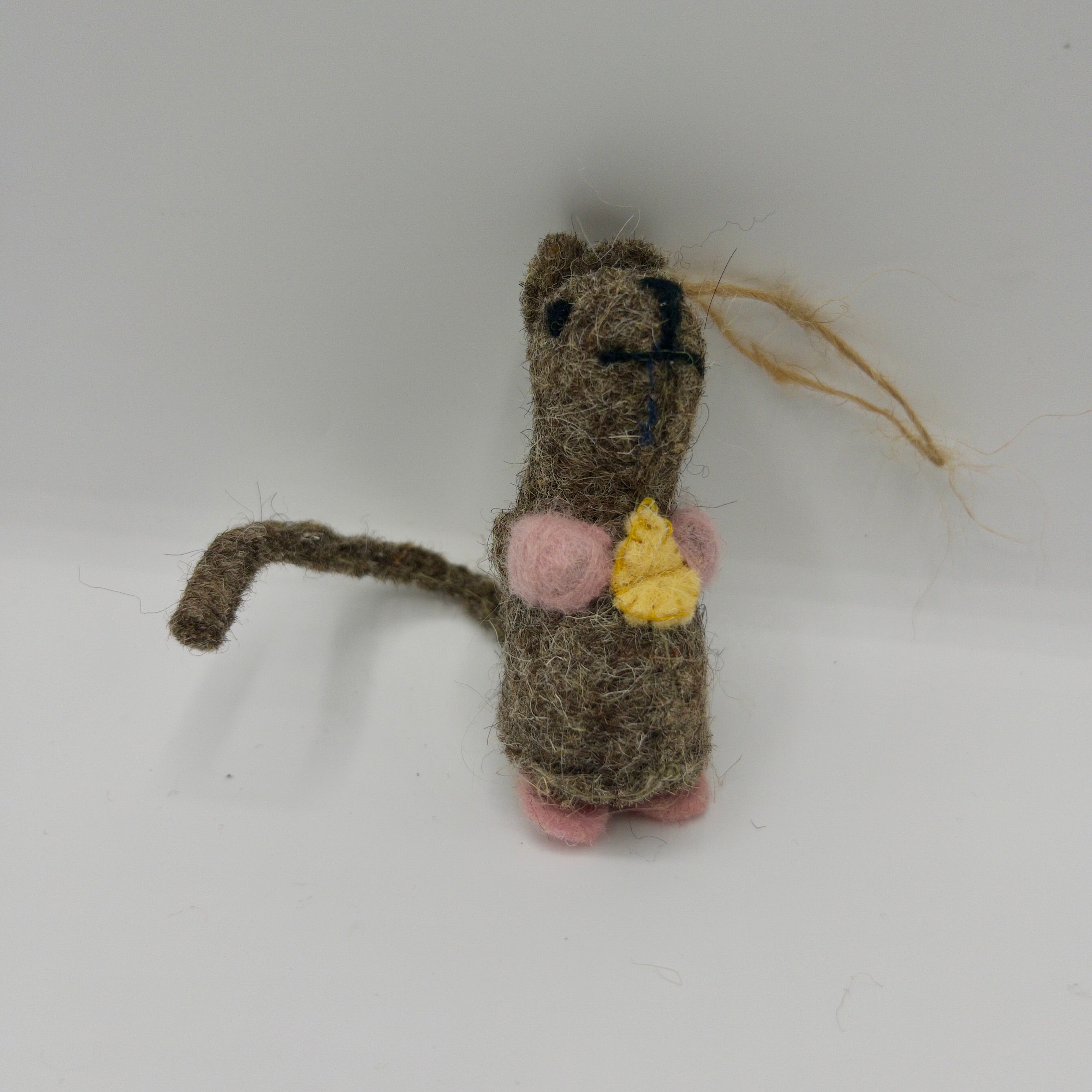 Made with sustainable and natural materials; wool felt, jute string, and a bamboo wood stick. Produced without using any added compound that would harm or be released when chewed.